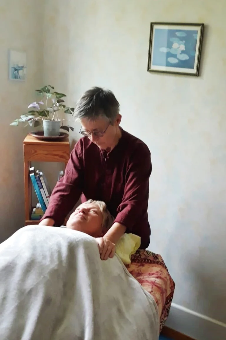 Désormais en retraite de la fonction d’infirmière, je me consacre à la fasciathérapie.